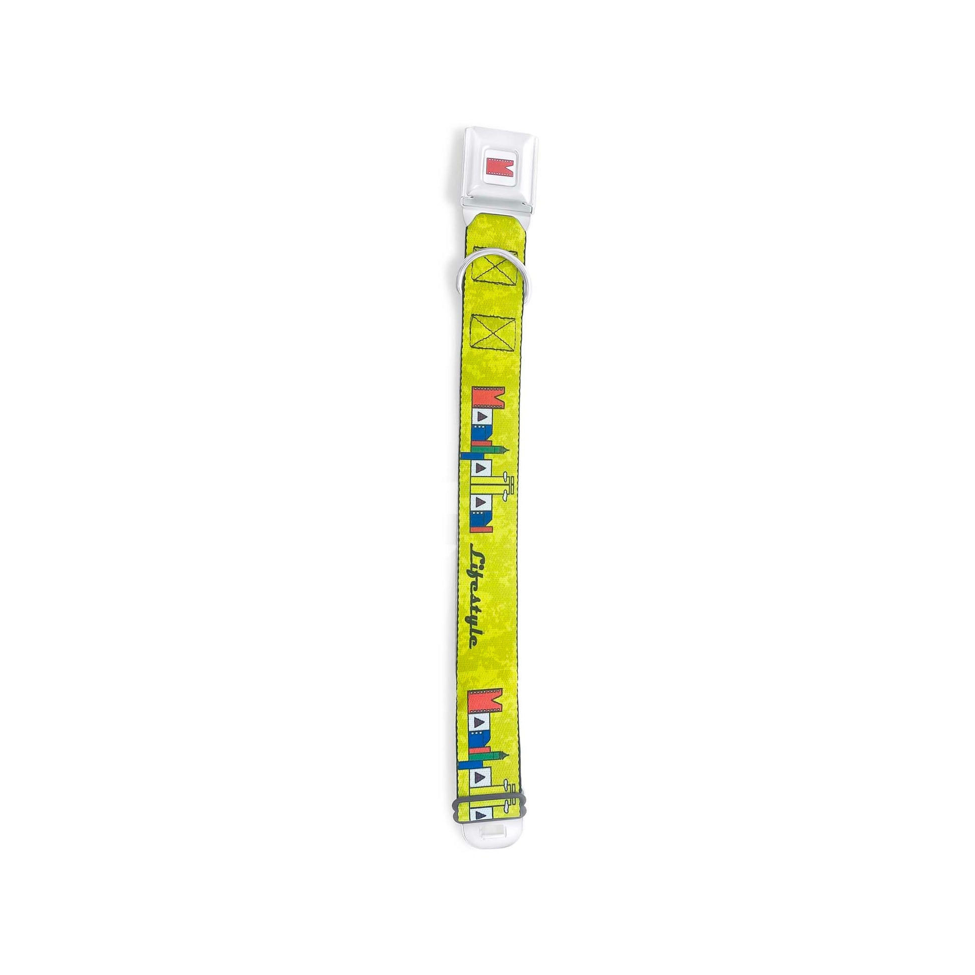 Your dog is sure to turn heads and spark conversation with our stylish and innovative SeatBelt Dog Collar! Made from high-density polyester and durable steel components, this collar is built to last. It features beautiful vibrant artwork. The buckle is a miniature authentic SeatBelt Buckle, so you press the center button to release the clasp. Made in the USA.